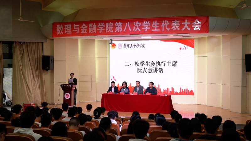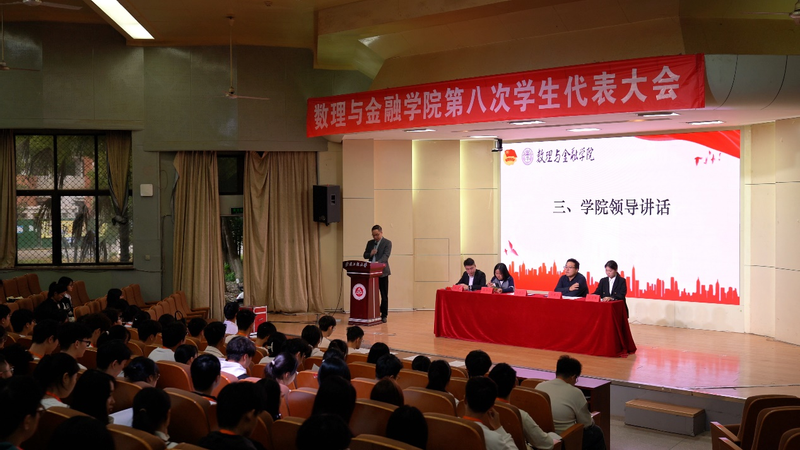本网讯 10月19日,数理与金融学院在学术报告厅召开第八次学生代表大会,学院党委副书记何志恒、校学生会执行主席阮友慧、学院辅导员及学生代表参加大会。