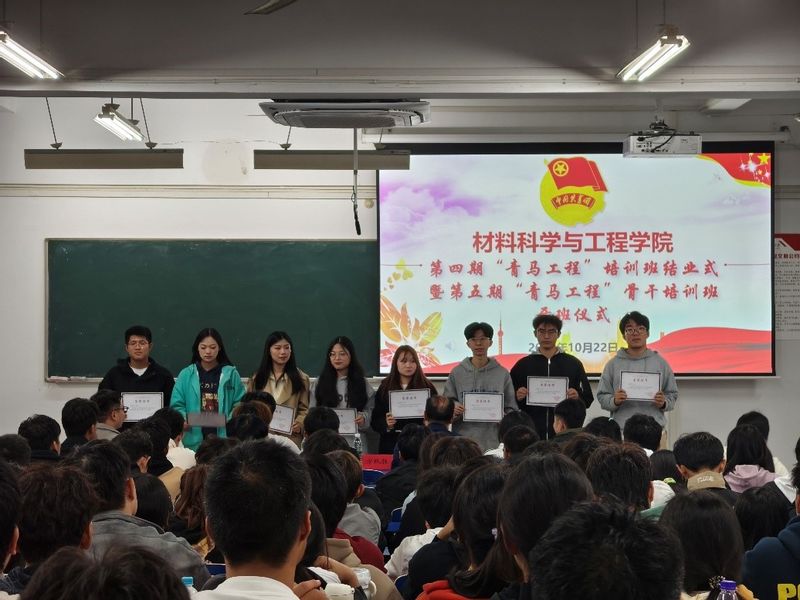本网讯 10月22日,材料科学与工程学院第四期“青马工程”骨干培训班结业式暨第五期“青马工程”骨干培训班开班式在6教212顺利举办。学院党委副书记方玖胜、学院团委教师兼职副书记鲁力出席活动。第四期青马班优秀学员、第五期青马班全体学员参加活动。开班仪式由学院团委负责人田园主持。