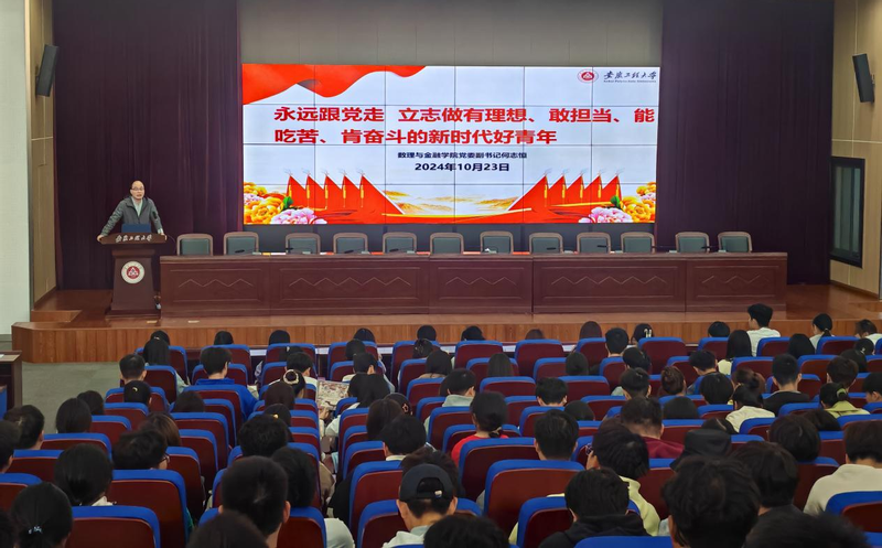 本网讯 10月23日,数理与金融学院分党校在图书馆五楼会议室举行第三十五期入党积极分子培训班开班典礼暨新生入党启蒙第一课。校党校督导组成员刘宝玉、学院党委副书记何志恒、培训班班主任、全体学员和2024级全体新生参加开班典礼。