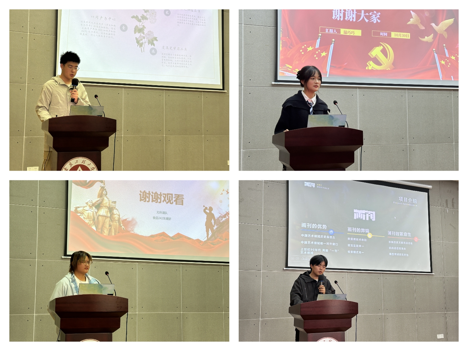 本届大赛历时一个月,分为初赛、决赛两个阶段。初赛共收到48组参赛作品,根据专业评委评分,共有12支队伍进入决赛进行现场展示。经过激烈角逐,作品《中国·舞狮魂》荣获一等奖,作品《刊〉数字活化方案》《红色印记》荣获二等奖,《基于智能体的中国工笔人物画教学辅助系统》《每时美食》《旅游推荐》获得三等奖,其中,《红色印记》获最佳创意奖,《中国·舞狮魂》获最佳美工奖。