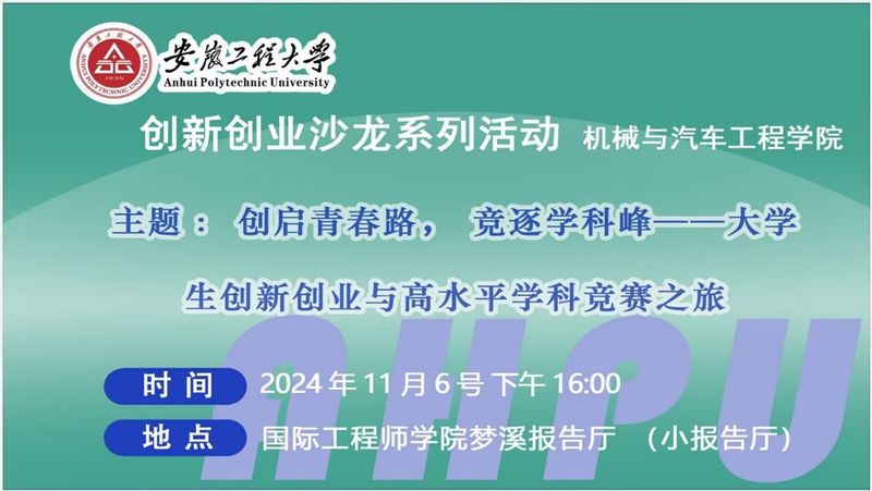 本网讯 11月6日,机械与汽车工程学院在国际工程师学院报告厅成功举办了以“创启青春路,竞逐学科峰-大学生创新创业与高水平学科竞赛之旅”为主题的创新创业沙龙活动。本次沙龙邀请了2008届优秀校友,芜湖柯埔智能装备有限公司总经理谭铁龙学长以及在“西门子杯”中国智能制造挑战赛中荣获特等奖的宋旭哲团队,与在校生分享宝贵的学习和创业经验。