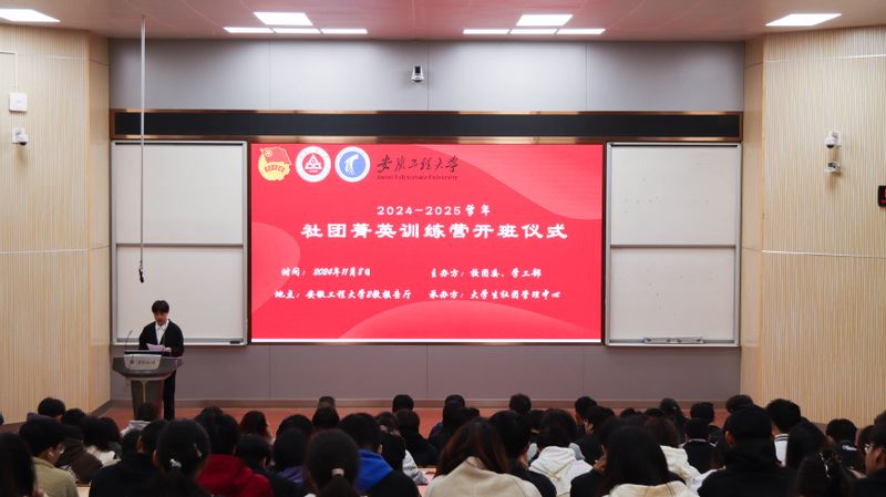 本网讯 11月8日,2024年社团菁英训练营开班仪式在2教报告厅成功举办。校团委书记李恒奎、副书记周海林,社团指导教师代表、体验产业学院副院长赵德勋以及全校78个学生社团负责人等出席此次活动。活动由学生社团管理中心副主任武奕同学主持。