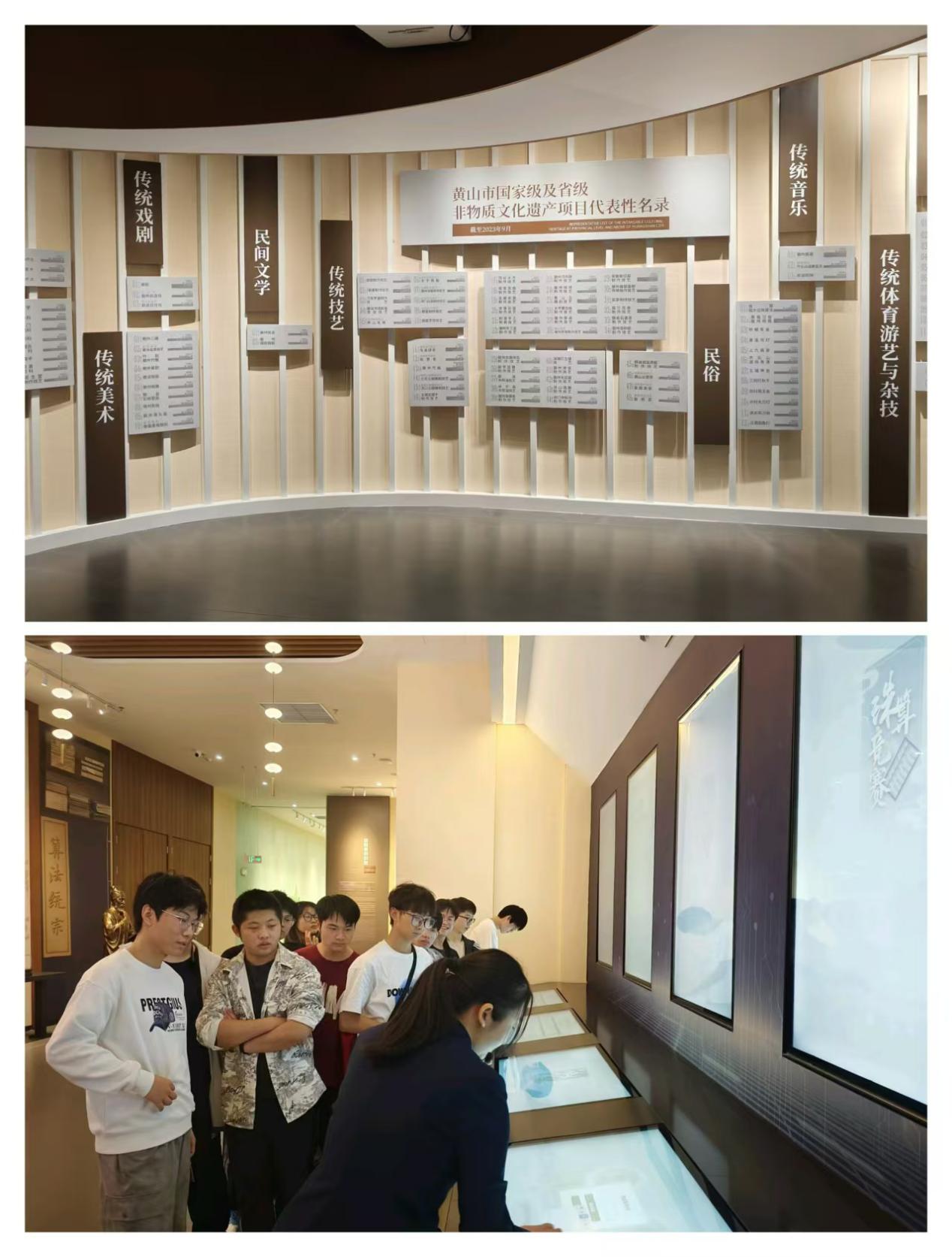 此外,师生一行还参观了黄山市非物质文化遗产馆和黄山市文创小镇,现场模拟制茶工艺,沉浸式地体验了家乡徽文化的魅力,感受到古徽州深厚的历史文化沉淀。