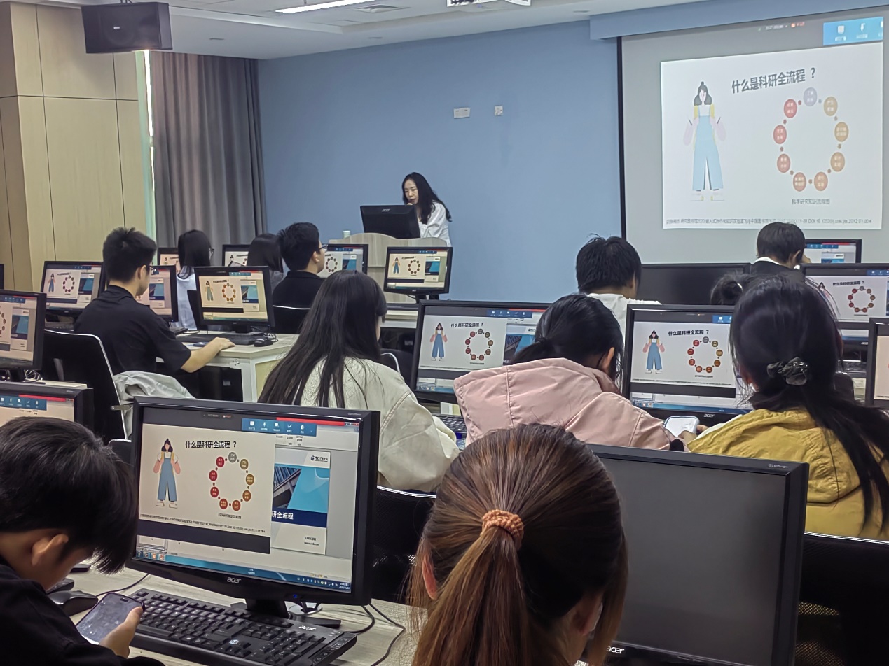 本网讯 为积极贯彻学校“三全六专”的育人理念,切实推进“三全六专”育人实践,使我校师生能够在工作和学习中充分利用CNKI(中国知网)数据库所提供的资源,11月13日,图书馆通过线上线下相结合的方式,举办了以“中国知网AI助力高校科研”为主题的中国知网数据库利用培训讲座,助力学生“学”起来。本次讲座邀请了同方知网培训师黄欢负责主讲。
