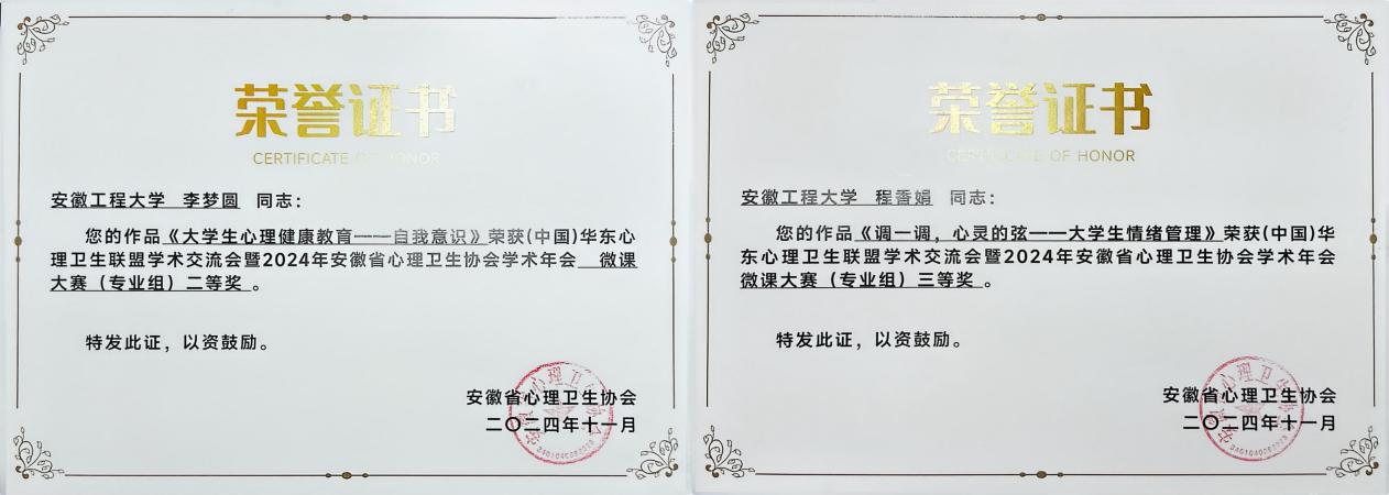 本网讯 为促进心理健康和精神卫生事业健康发展,加大心理健康科普宣传力度,提升心理健康服务质量。1115-17,心理健康教育中心组织教师参加华东心理卫生联盟学术交流会暨2024年安徽省心理卫生协会学术年会,并在与会评选中荣获心理微课大赛奖,本次会议由安徽省心理卫生协会主办。