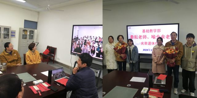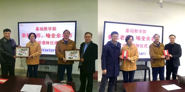 本网讯 11月27日,机械与汽车工程学院在学院基础教学部党员活动室为喻全余、秦耘两位老师举办荣退仪式,学院党委书记魏长顺、院长王建平,分工会主席秦广虎以及基础教学部全体教师参加了仪式。仪式由基础教学部副主任徐锐博士主持。