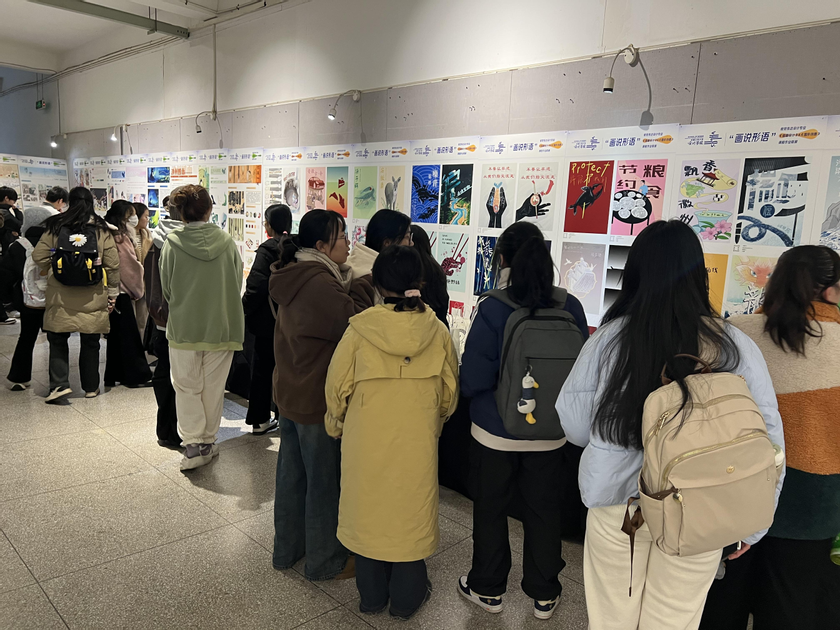 本网讯 12月1日,在这美好的初冬时节,一场“图说形语”课程作业联展在设计学院设计展厅温暖开幕。本次展览由设计学院视觉传达设计系许娜、尹岚、张翠、金鹏四位老师指导,汇集了视觉传达设计专业22级和23级全体学生《插画设计》和《图形创意设计》两门课程的作业成果,展现了学生们对地域文化、时代发展、文化传承和环境保护等社会议题的深刻关注和独到见解。