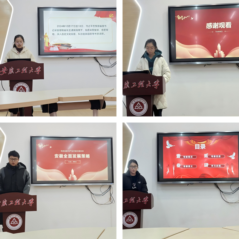 活动中,校学生会段艺琳、大学生艺术教育中心祁曼雲、大学生社团管理中心章高云领、校伙管会刘欣怡等同学领学了习近平总书记此行考察安徽重要讲话精神,参会人员进行了分享与交流。大家纷纷表示,习近平总书记的重要讲话高屋建瓴、内涵丰富,不仅为安徽的发展提供了科学指导,也指引青年学子逐梦向前,激励青年学子奋斗拼搏。他们表示,将认真领悟党的创新理论的强大力量,不断提升自身的创新能力和服务水平,为校园文化建设贡献自己的力量。