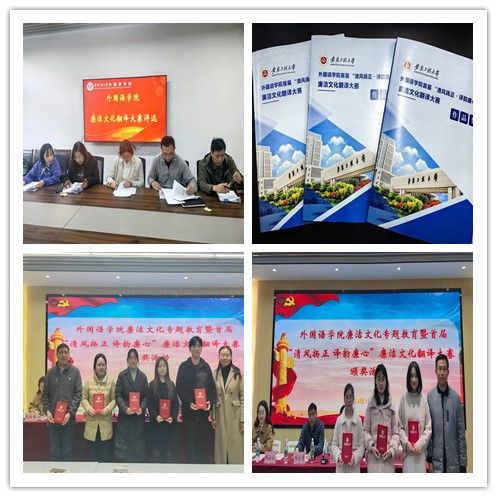 据悉,外国语学院首届“清风扬正 译韵廉心”廉洁文化翻译大赛自10月下旬启动,得到师生党支部积极支持。学生党支部组织学生党员、入党积极分子参赛,教师党支部组织教师党员指导学生创作翻译作品并承担评委工作。共计一百余名师生参加了活动,59篇优秀翻译作品获奖,研究生导学支部获评优秀组织奖。