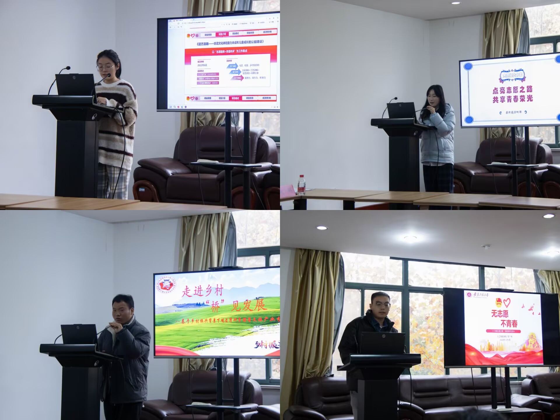 姚伟波领学了习近平总书记考察安徽时的重要讲话精神,校青年志愿服务中心工作人员对前期开展工作进行汇报展示。校十佳青年志愿者非织造221柯烨同学作题为“点亮志愿之路,共享青春荣光”的志愿服务项目分享。团百花金奖项目负责人纺织213余心怡同学分享了“凤尾兰”非遗文化志愿项目的申报经验。芜湖市“芜聚青春,共创未来”大学生暑期社会实践重点项目负责人卢敬卫行管221展示了题为“走进乡村,‘桥’见发展”实践过程。范广伟介绍了志愿服务的发展脉络与时代要求、优秀志愿服务项目的评判标准和优秀志愿服务项目的设计方法,建议同学们要结合重要时间节点开展志愿服务活动。大家围绕“如何促进校园志愿服务组织协同发展”的主题开展自由讨论。