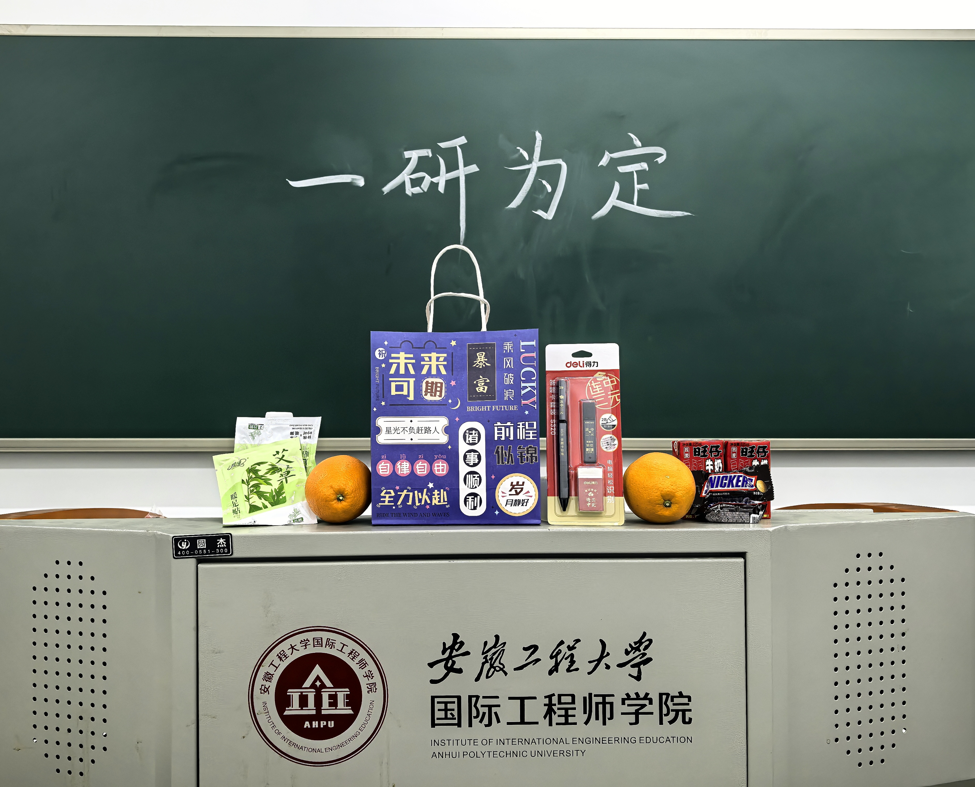 为让考研学子感受到学院的关怀,学院精心准备了富有寓意的考研大礼包。礼包中的橙子寓示“心想事成”,文具套装助力考试得心应手,旺仔牛奶象征“旺”运当头,暖足贴则为寒冬送去丝丝温暖。每一份礼物都凝聚着学院对考研学子们的祝福与期待。