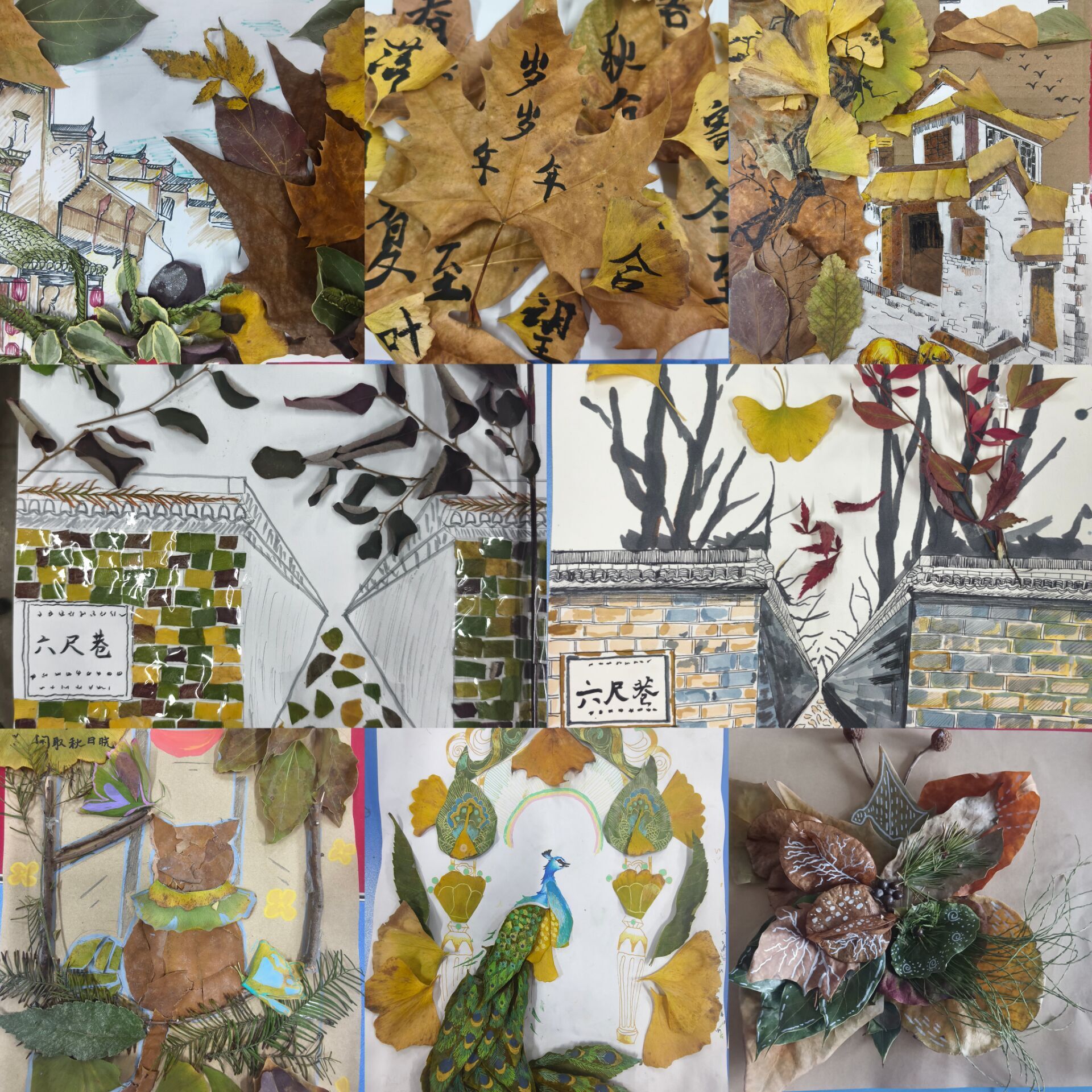 此次“秋叶活动”共分为三个赛道:徽韵秋叶、金秋彩绘与巷陌秋影,共吸引100余位同学参加。参赛者利用课余时间收集各种色彩斑斓的树叶,充分发挥想象力和创造力,让平凡的树叶华丽“变身”为一件件富有故事感和情感深度的作品,培养了自身发现美、欣赏美、创造美的能力,促进身心和谐,健康成长。