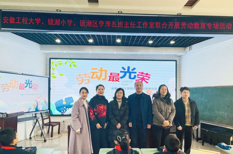 本网讯 为深入贯彻习近平总书记关于教育的重要论述,全面贯彻党的教育方针,落实《中共中央、国务院关于全面加强新时代大中小学劳动教育的意见》,加快构建德智体美劳全面培养的教育体系,探索大中小一体化劳动教育实践,深化我校“三全六专”育人实践,12月12日,材料科学与工程学院党委副书记方玖胜、劳动教育先锋示范班班主任鲁力带领我校劳动教育先锋示范班赴芜湖市镜湖小学开展宣讲活动。镜湖小学校长赵玲会见学校一行,副校长李晓清、党支部副书记张雪梅、名班主任李萍等参加活动。