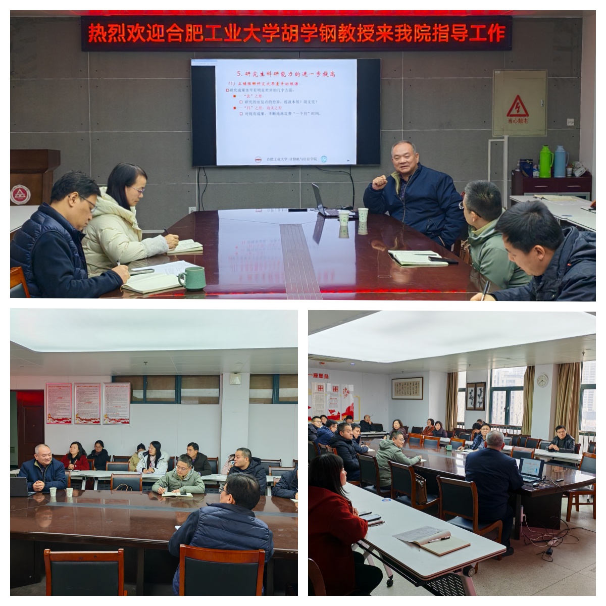 本网讯 为进一步落实研究生导师立德树人的职责,提升研究生的科研素养,12月13日,计算机与信息学院邀请合肥工业大学胡学钢教授在C座622会议室作了以“研究生科研能力培养之思考”为主题的专题报告。报告会由院长汪军主持,研究生导师和本科生导师参加了此次报告会。