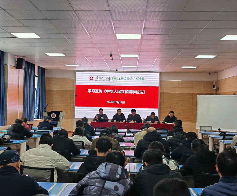 本网讯 为进一步贯彻落实《中华人民共和国学位法》,加强对学位制度的理解与认知,生物与食品工程学院于12月18日召开全体教职工大会,组织学习《中华人民共和国学位法》。会议由院长葛飞主持。