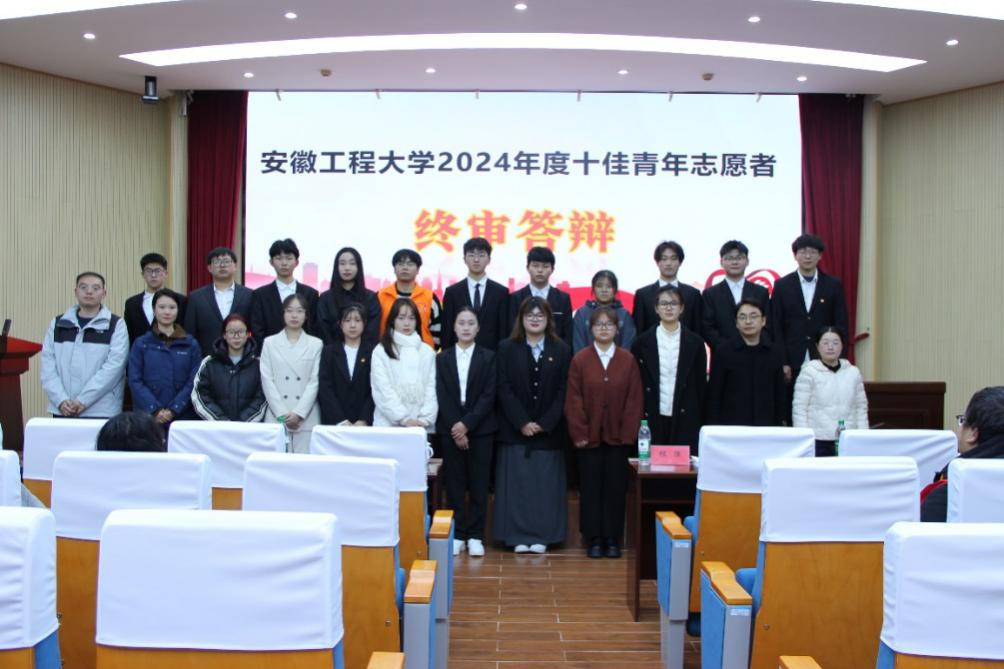 本网讯 为进一步弘扬“奉献、友爱、互助、进步”志愿服务精神,激励广大青年志愿者积极投身公益事业,12月18日,2024年度“十佳青年志愿者”评选答辩活动在A座104会议室成功举办。芜湖市委社会工作部社会工作人才和志愿服务科科长、芜湖市志愿者协会会长程强,团市委学少部部长钱泽慧,芜湖市志愿服务指导中心副主任赵蕙,团弋江区委书记王月,全国大学生公益之星、人工智能学院教师范广伟担任本次活动评委。