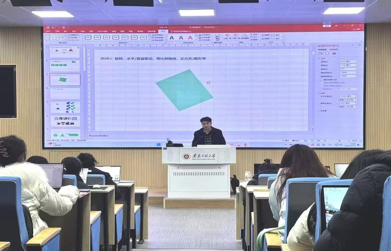 研习PPT技巧,提升宣讲效能。12月11日,校团委在校5号教学楼217教室开展了PPT培训,材料科学与工程学院鲁力老师从PPT的快捷应用、配色方案、排版设计、辅助工具等方面进行分享,运用实例对比向大家展现了不同PPT给观众带来的感观差异,直观表现了PPT在宣讲过程中的重要性,也进一步勉励同学们将PPT制作得更加精美,从而更好地服务宣讲工作。