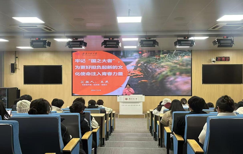 文化宣传扬国粹,理论思想固根基。12月8日,党委宣传部王燕老师在5教217带来牢记“国之大者”,为担负起新的文化使命注入青春力量主题讲座。王燕老师从“极端”一词入手,介绍思想文化宣传工作的重要性,鼓励青年讲师团成员要遵循习近平总书记的教导,不断增强脚力、眼力、脑力、笔力,要有正确的政治态度和过硬的综合素质,自觉承担起举旗帜、聚民心、育新人、兴文化、展形象的使命任务,充分发挥青年讲师团在思想文化宣传组织中的重要作用。