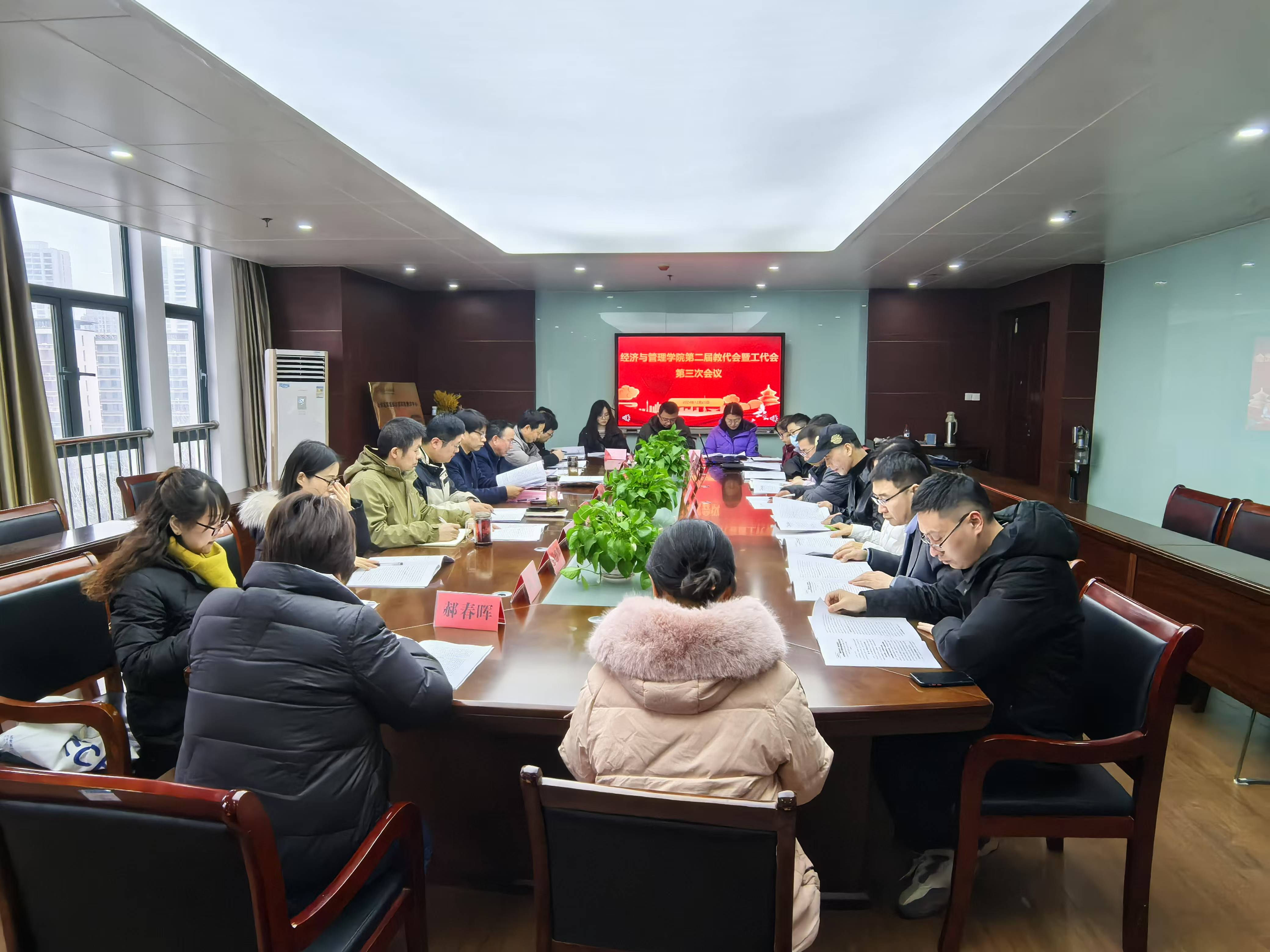 本网讯 12月25日,经济与管理学院在学院818会议室召开第二届教职工代表大会暨工会会员代表大会第三次会议,学院教代会、工代会全体代表和列席代表参加会议。