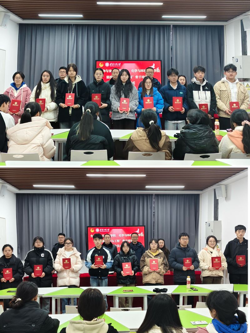本网讯 为深入学习贯彻落实党的二十届三中全会精神,培养一批具有高度思想政治觉悟和实践能力的青年马克思主义者。生物与食品工程学院、化学与环境工程学院于1月3日在化环学院学生能力发展中心举办第四期“青马工程”大学生骨干培训班结业典礼。生物与食品工程学院党委副书记王彦青、化学与环境工程学院党委副书记胡承功、学院团委负责人以及青马工程培训班全体学员参加此次活动。仪式由王康主持。