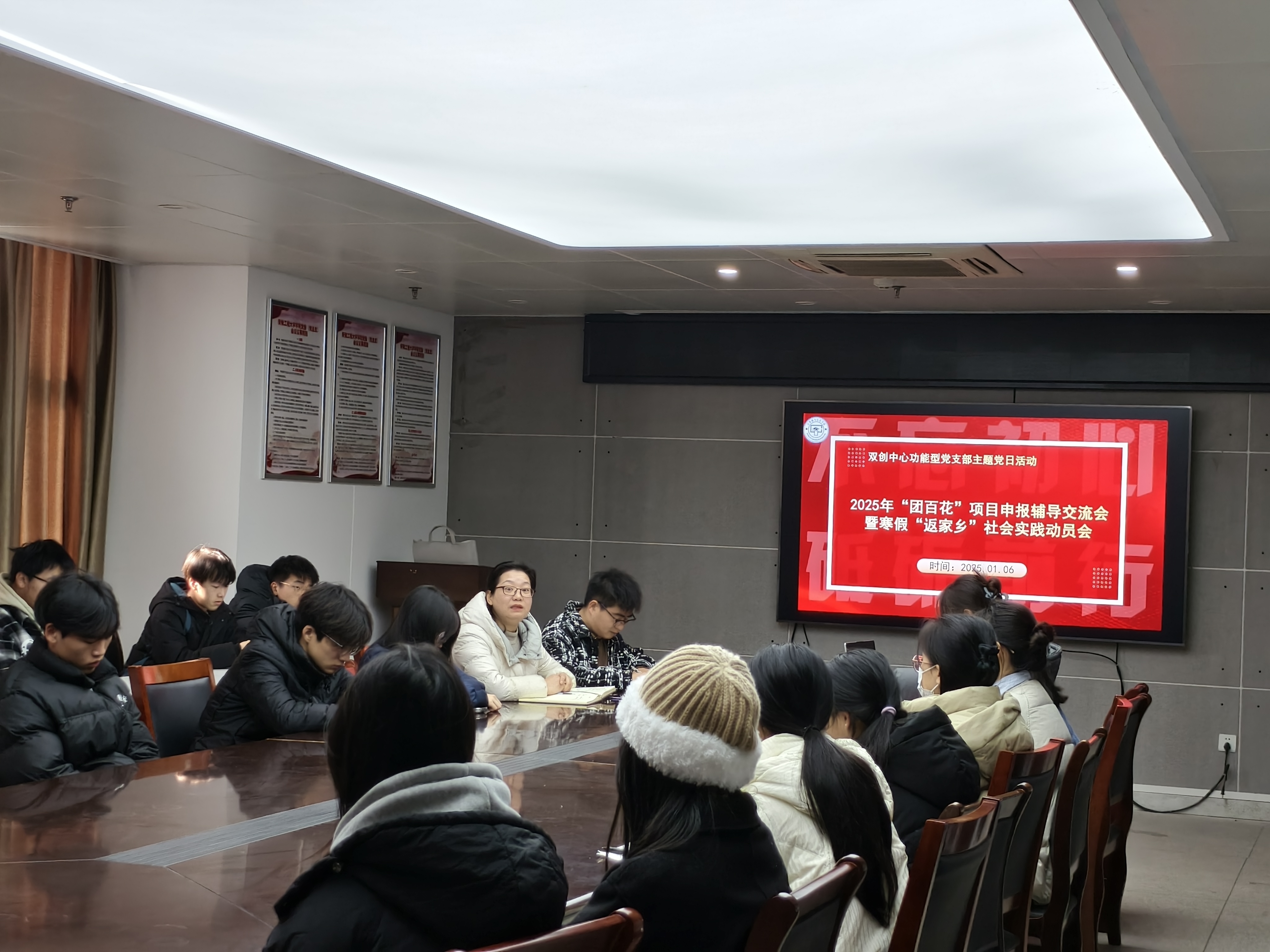 本网讯 为全面贯彻落实党的二十届三中全会精神和习近平总书记在安徽考察时的重要讲话精神,扎实推进“三全六专”育人实践鼓励引导青年学子寒假期间积极返回家乡参与实践活动,发挥假日思政的育人作用,1月6日,计算机与信息学院在C622开展双创中心功能型党支部主题党日活动,邀请学生社团优秀党员作“团百花”项目申报辅导交流和寒假“返家乡”社会实践活动宣传动员,学院党委副书记孙德茹、学院团委负责人孙力力、班长团支书代表、社团负责人参加活动。