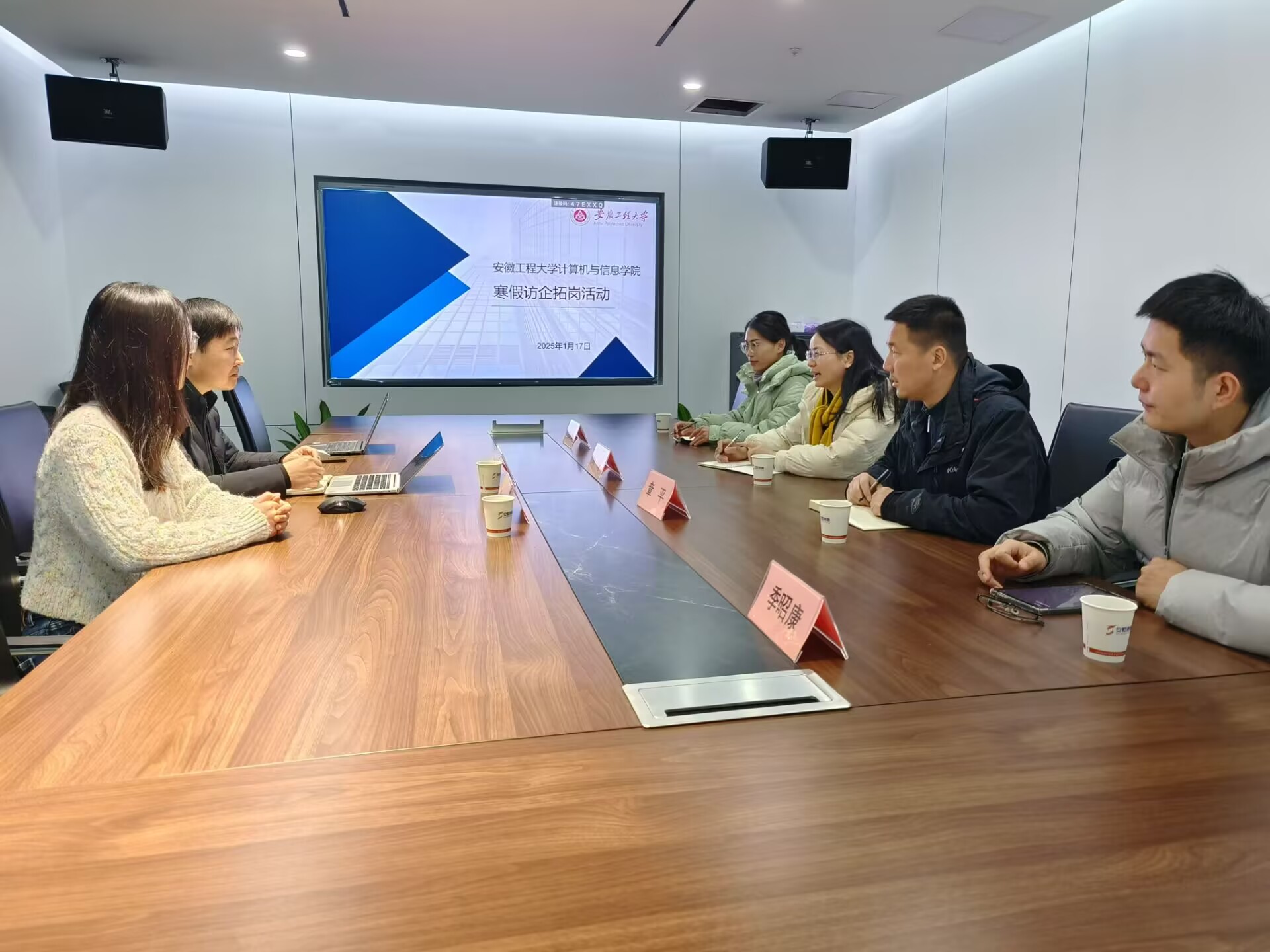 本网讯 1月17日,计算机与信息学院副院长刘涛、物联网工程专业系主任章平、系副主任包象琳,以及骨干教师季昭康一行,前往芜湖安恒信息科技有限公司开展校企合作调研与访企拓岗活动。本次访企拓岗活动旨在进一步深化校企合作,拓宽学生实习就业渠道,促进教育链、人才链与产业链、创新链的有机衔接。活动中,双方就项目申报、人才培养、学生实习就业等多个方面进行了广泛的探讨。