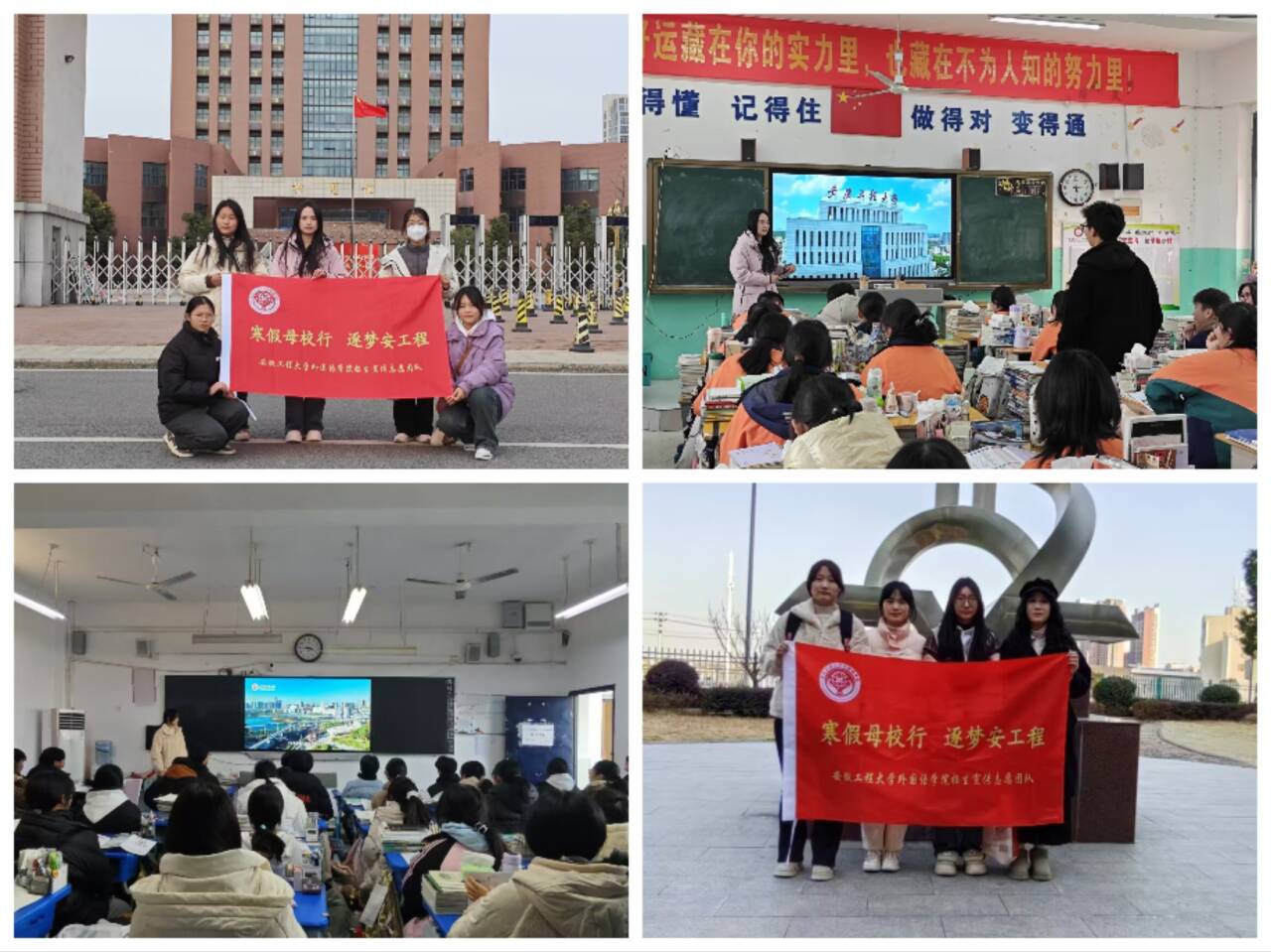 本网讯 为做好寒假学校招生宣传工作,1月9日至20日,外国语学院组建4支学生招生宣传团队,分赴合肥八中、合肥九中、阜阳十中、望江三中等4所中学开展宣传活动。