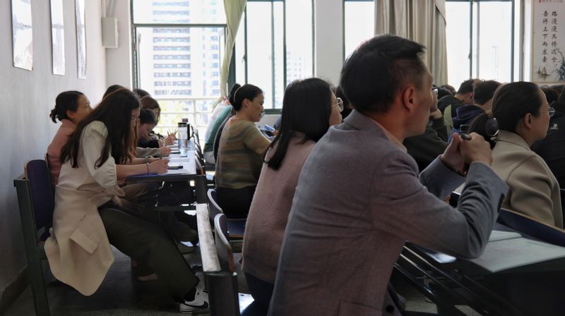 本网讯 3月25日,由教务处(教师能力发展中心)指导、马克思主义学院组织的《中国近现代史纲要》“金”彩一课示范教学观摩活动在5J408进行,各学院近20名教师参加本次示范教学观摩活动。课程由学院青年教师李梅景博士主讲。
