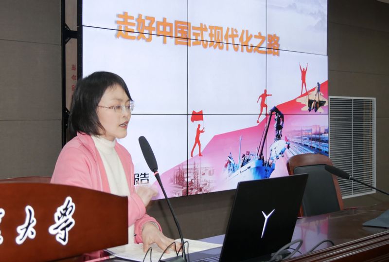 备课会上,鲍琴老师进行了《走好中国式现代化之路——深入学习贯彻党的二十大精神》教学专题示范教学,她以“什么是现代化”“什么是中国式现代化”“如何走好中国式现代化之路”为主线,从教学目的、教学重难点、课程设计及教学反思等方面做了细致讲解。与会教师就教学设计相关内容进行了研讨和交流,整场备课会氛围热烈。